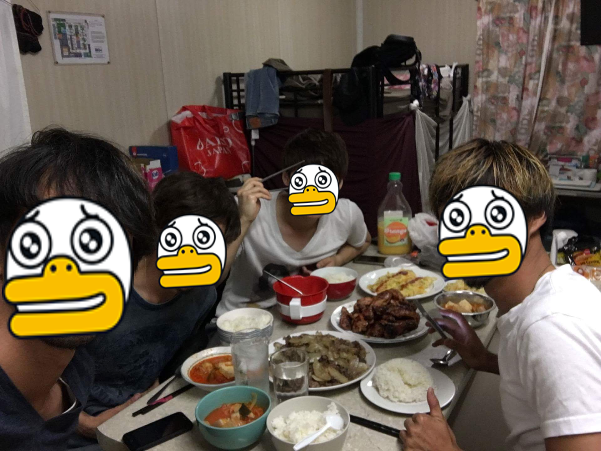 주말이거나 특별한 날이면 모여서 파티를 한다. 피자를 시켜먹을때도 있고, 각 자 음식을 하나씩 만들어서 나눠먹곤한다.