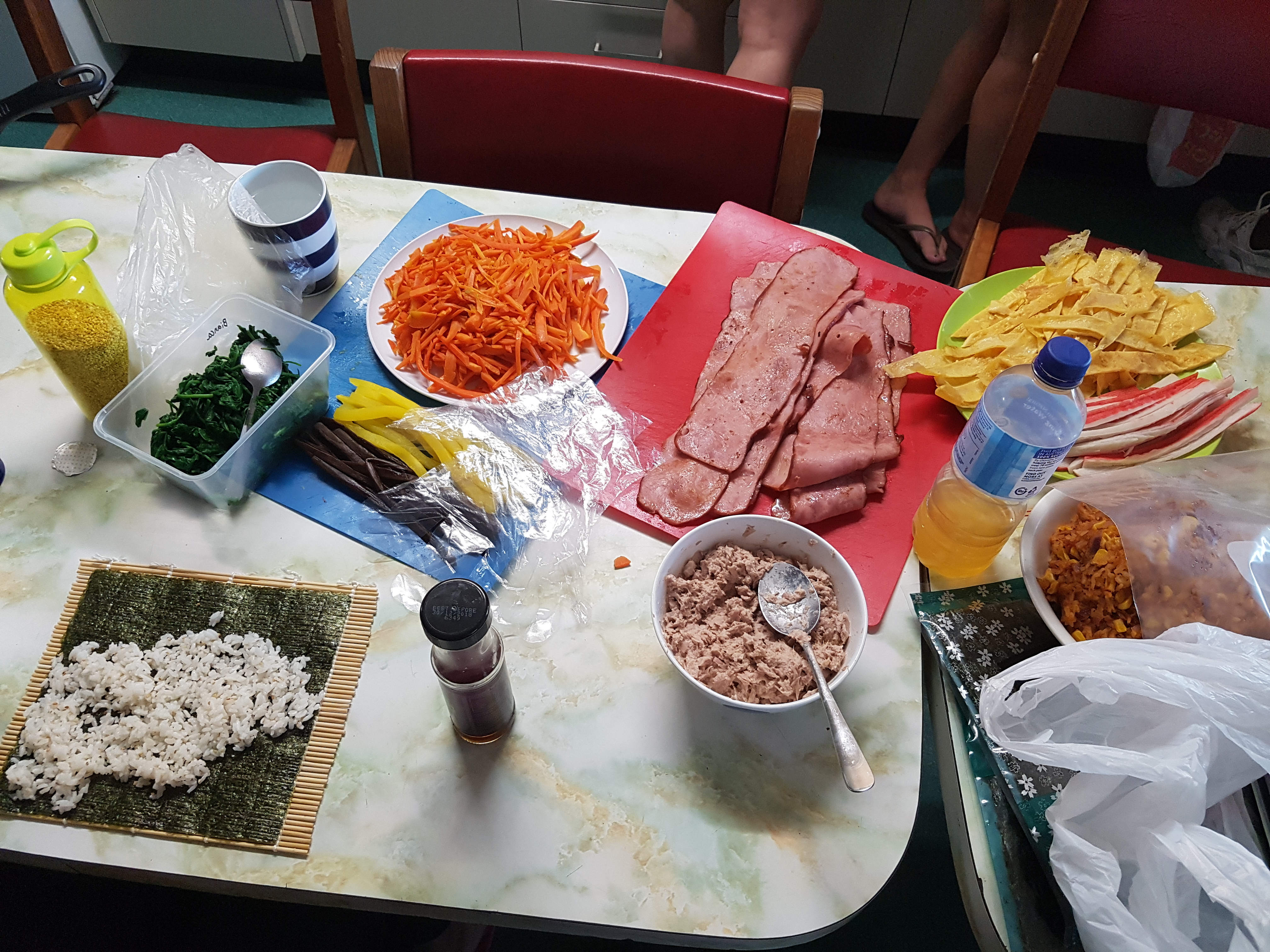 한 친구가 김밥만들길래 도와주고 얻어먹었다. 한국음식 인기가 많았다.